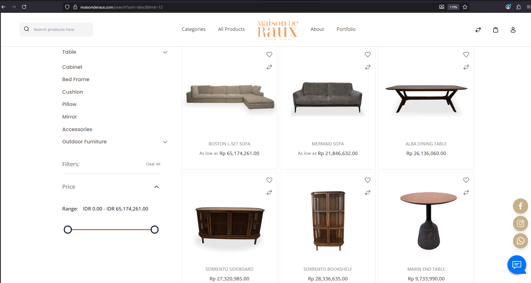 Maison De Raux berlokasi di Indonesia Design District, PIK 2, Jakarta Utara. Selain memiliki showroom eksklusif, Maison De Raux juga menyediakan platform online melalui maisonderaux.com, sehingga kamu bisa menjelajahi koleksi produk mereka dengan mudah dari mana saja.